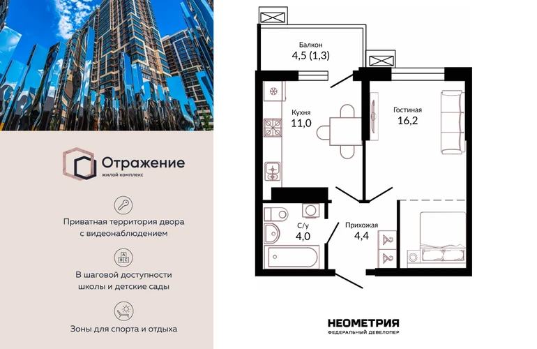 Все жилые комплексы, возводимые Федеральным девелопером «Неометрия», отличаются высоким качеством отделки, удобными и функциональными планировками, а также комфортными зонами общего пользования. Особое внимание уделяется безопасности и благоустройству территории. Застройщик тщательно отбирает поставщиков и подрядчиков, оценивая их по множеству критериев, а все строительные материалы проходят обязательное тестирование, что гарантирует надежность и долговечность зданий.