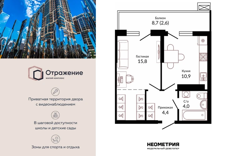Все жилые комплексы, возводимые Федеральным девелопером «Неометрия», отличаются высоким качеством отделки, удобными и функциональными планировками, а также комфортными зонами общего пользования. Особое внимание уделяется безопасности и благоустройству территории. Застройщик тщательно отбирает поставщиков и подрядчиков, оценивая их по множеству критериев, а все строительные материалы проходят обязательное тестирование, что гарантирует надежность и долговечность зданий.